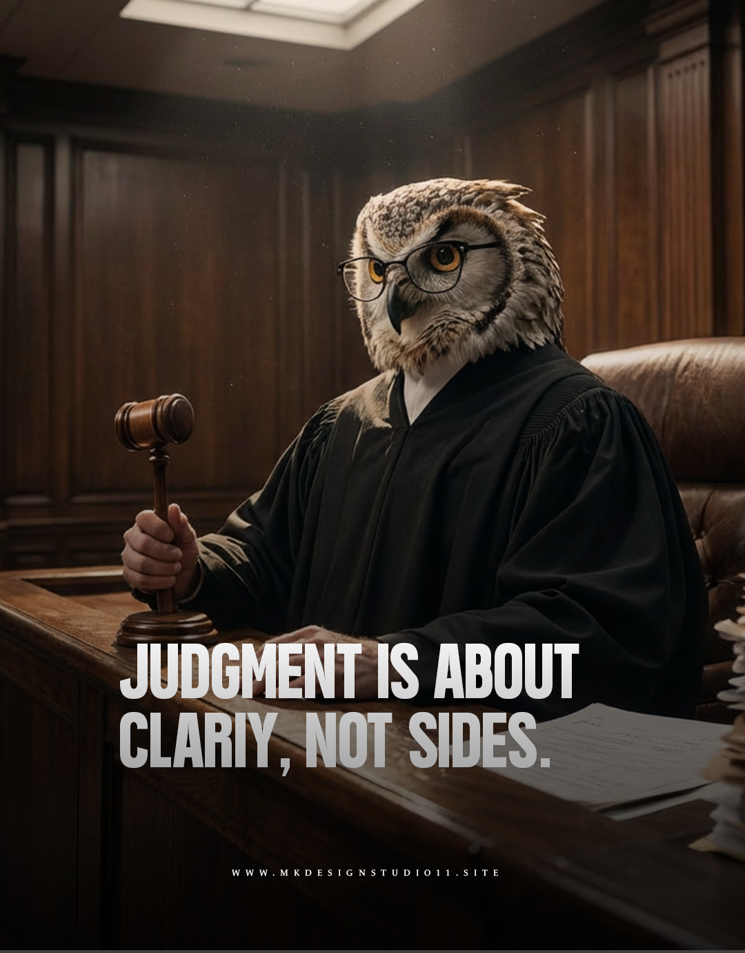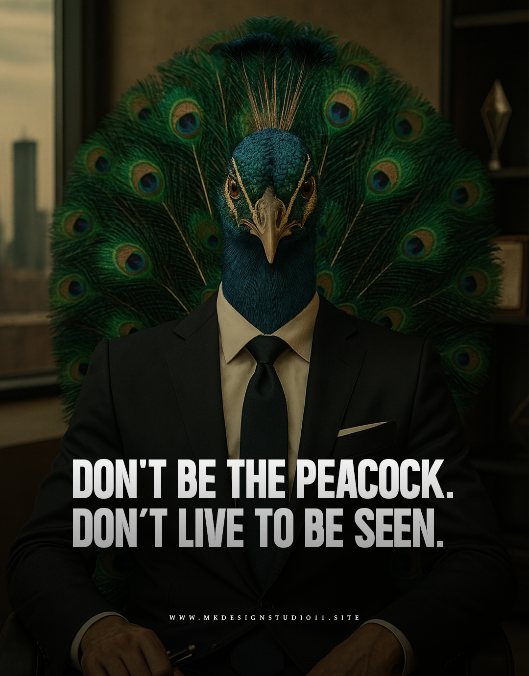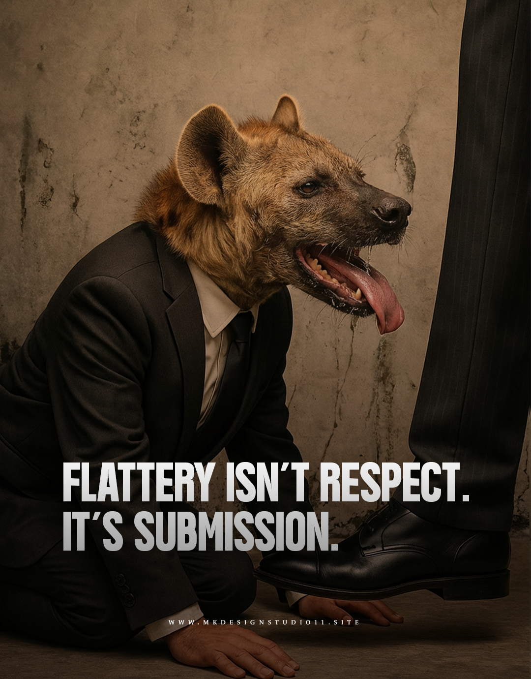 Cinematic lighting and restrained typography create a tense editorial narrative around hierarchy and authority.