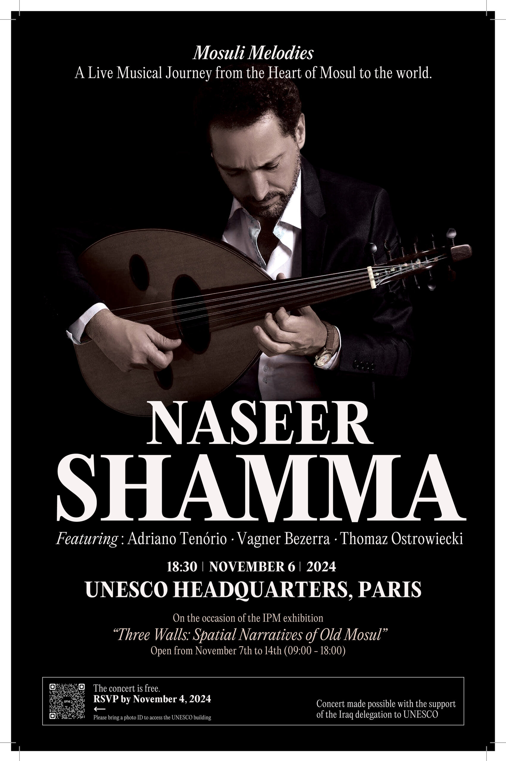 This poster was created for a commemorative concert by Naseer Shamma honoring the cultural memory of Mosul after the destruction of ISIS prisons.