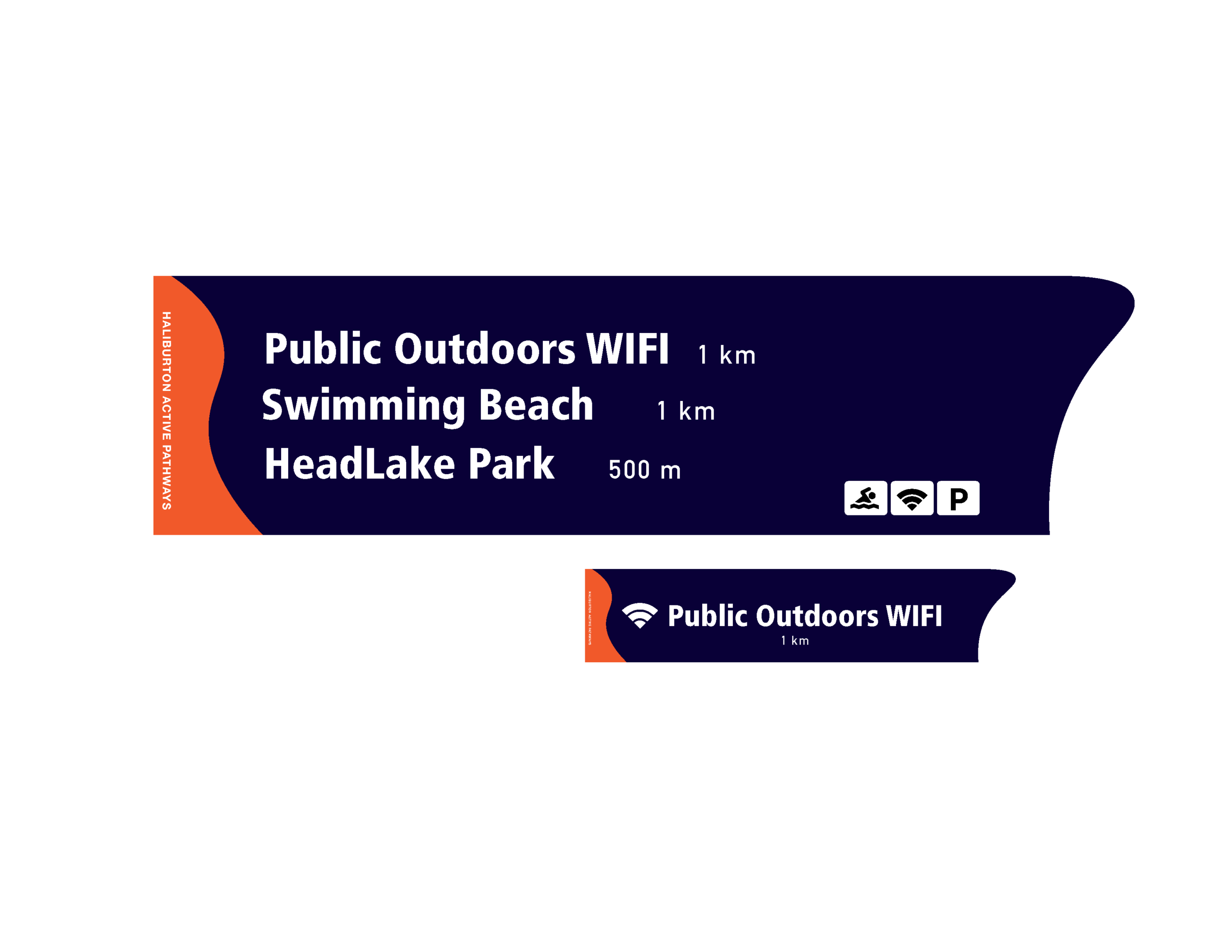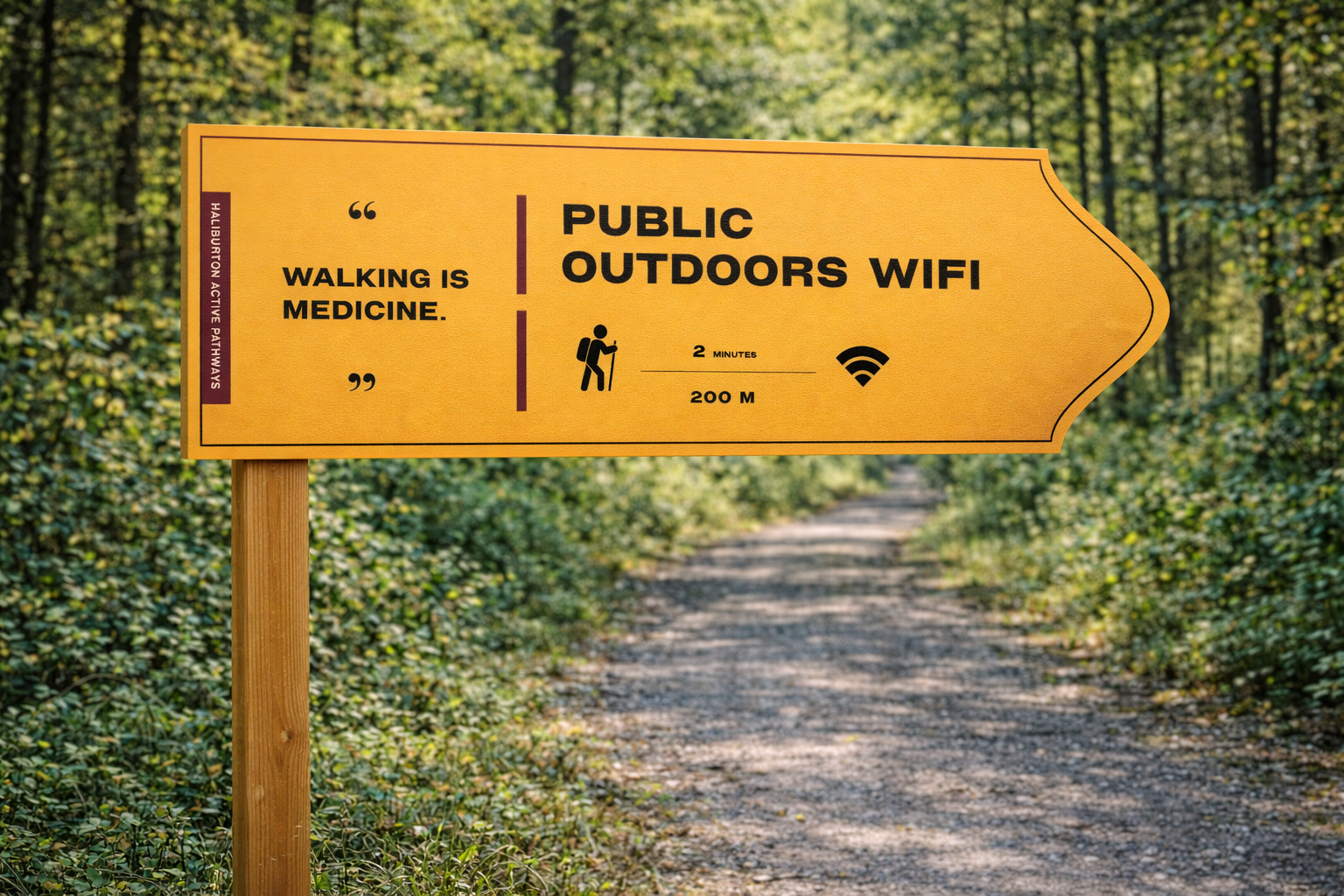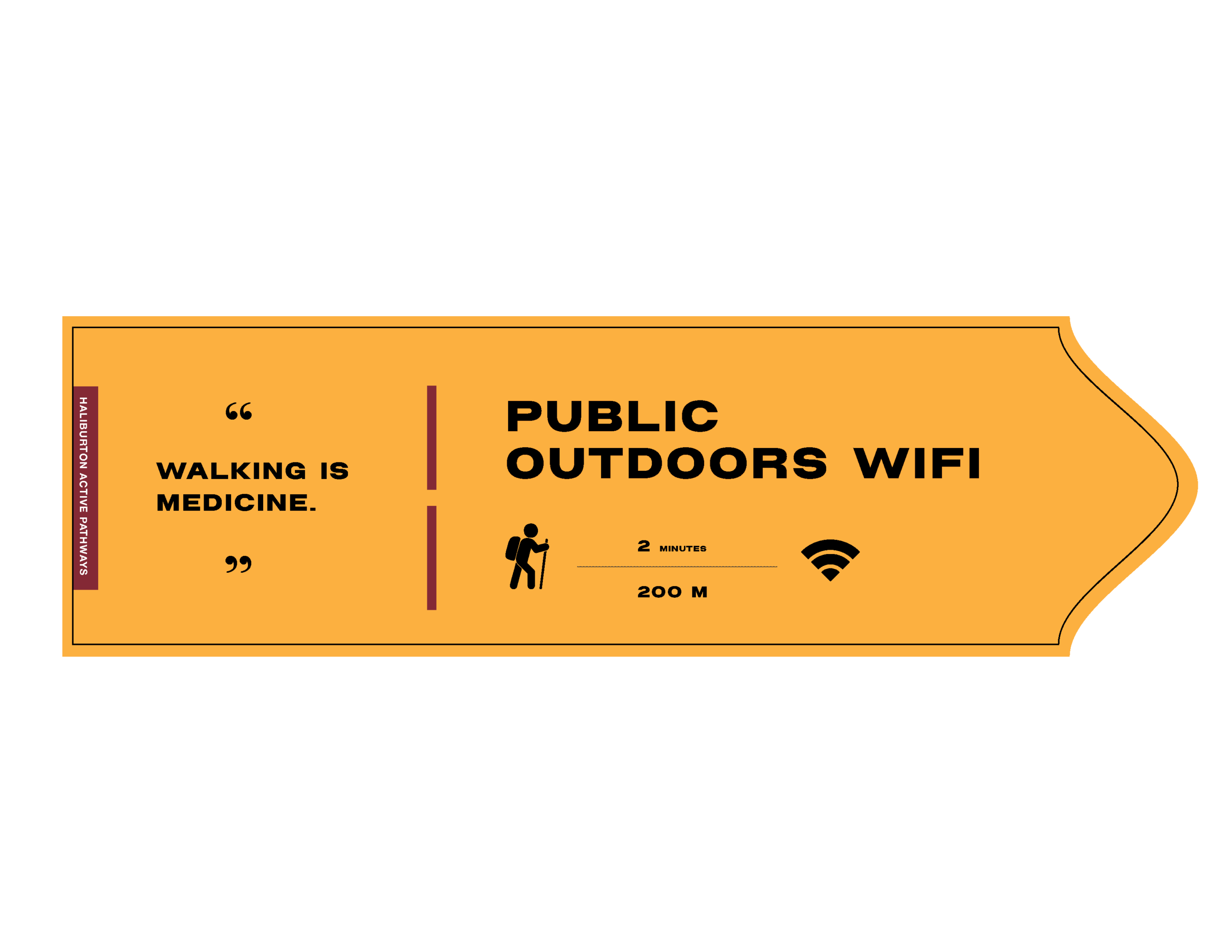 Wayfinding system concept and preliminary signage sketches for Haliburton Rail Trail. Developed map hierarchy, directional icon system, motivational messaging integration, and form language inspired by trail topography.