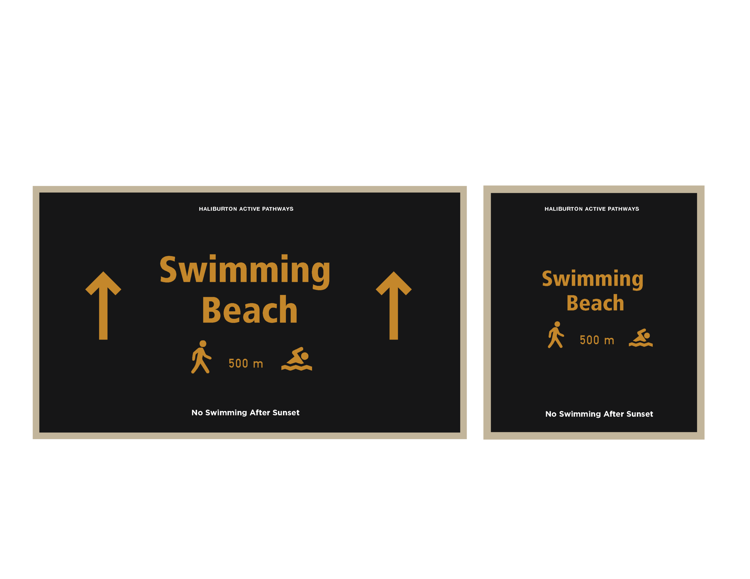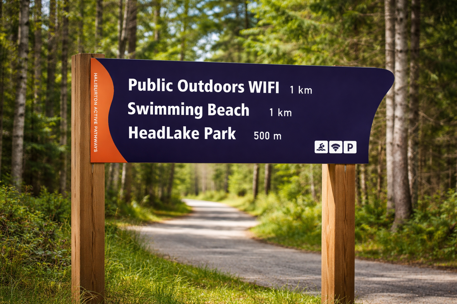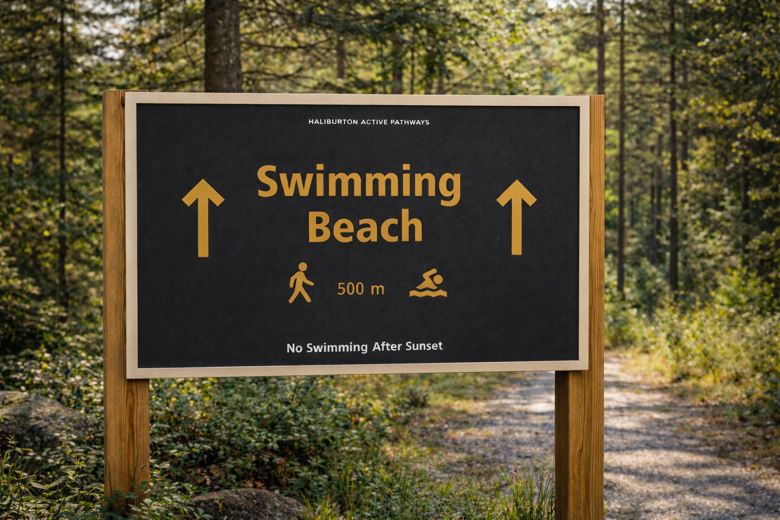 Wayfinding system concept and preliminary signage sketches for Haliburton Rail Trail. Developed map hierarchy, directional icon system, motivational messaging integration, and form language inspired by trail topography.