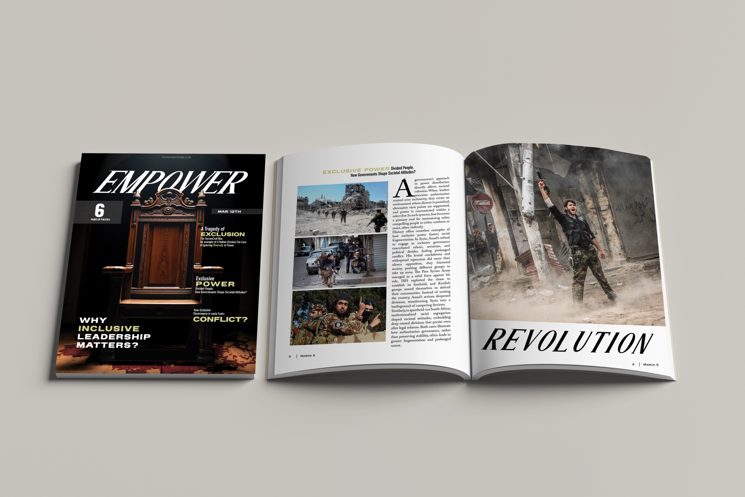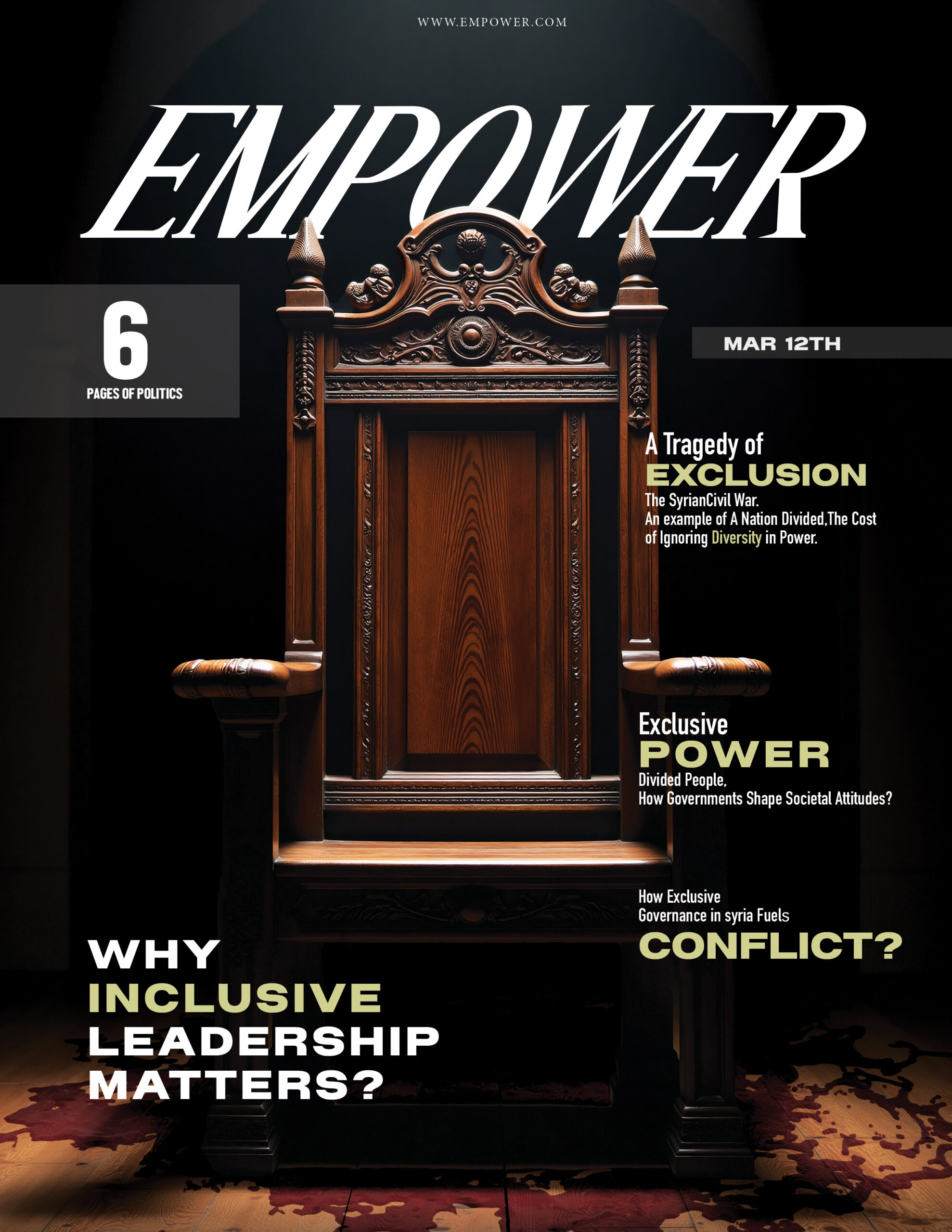 conceptual magazine cover using the throne as a symbol of power, exclusion, and access.