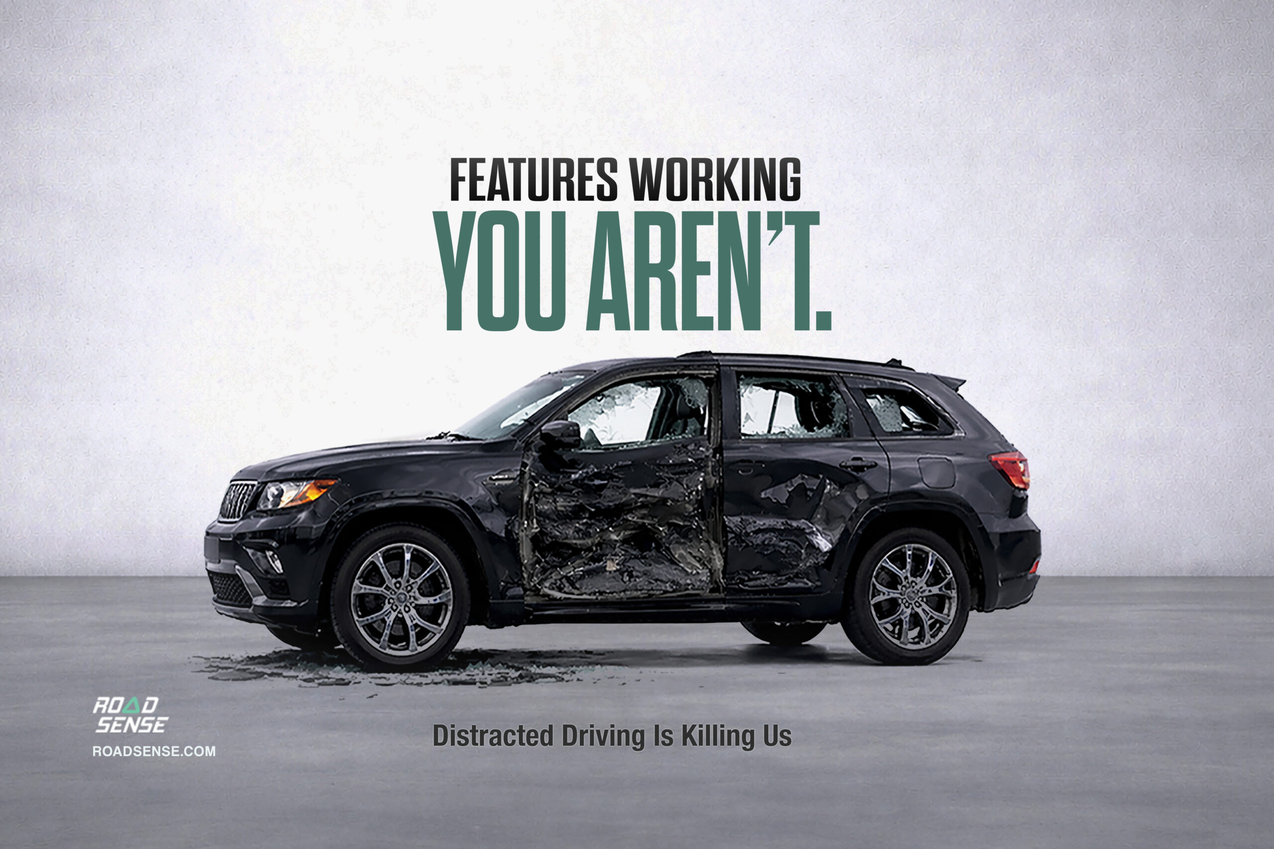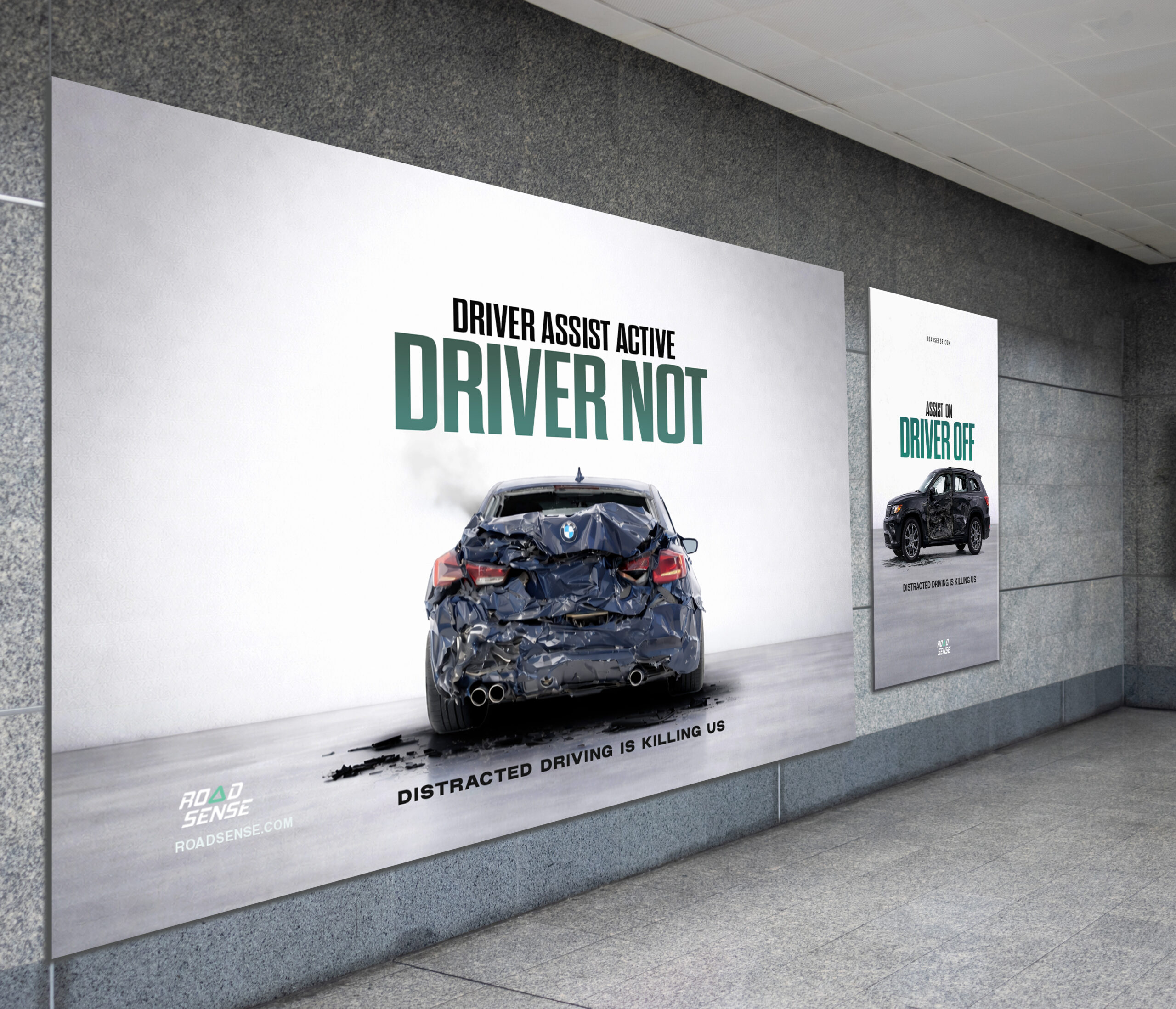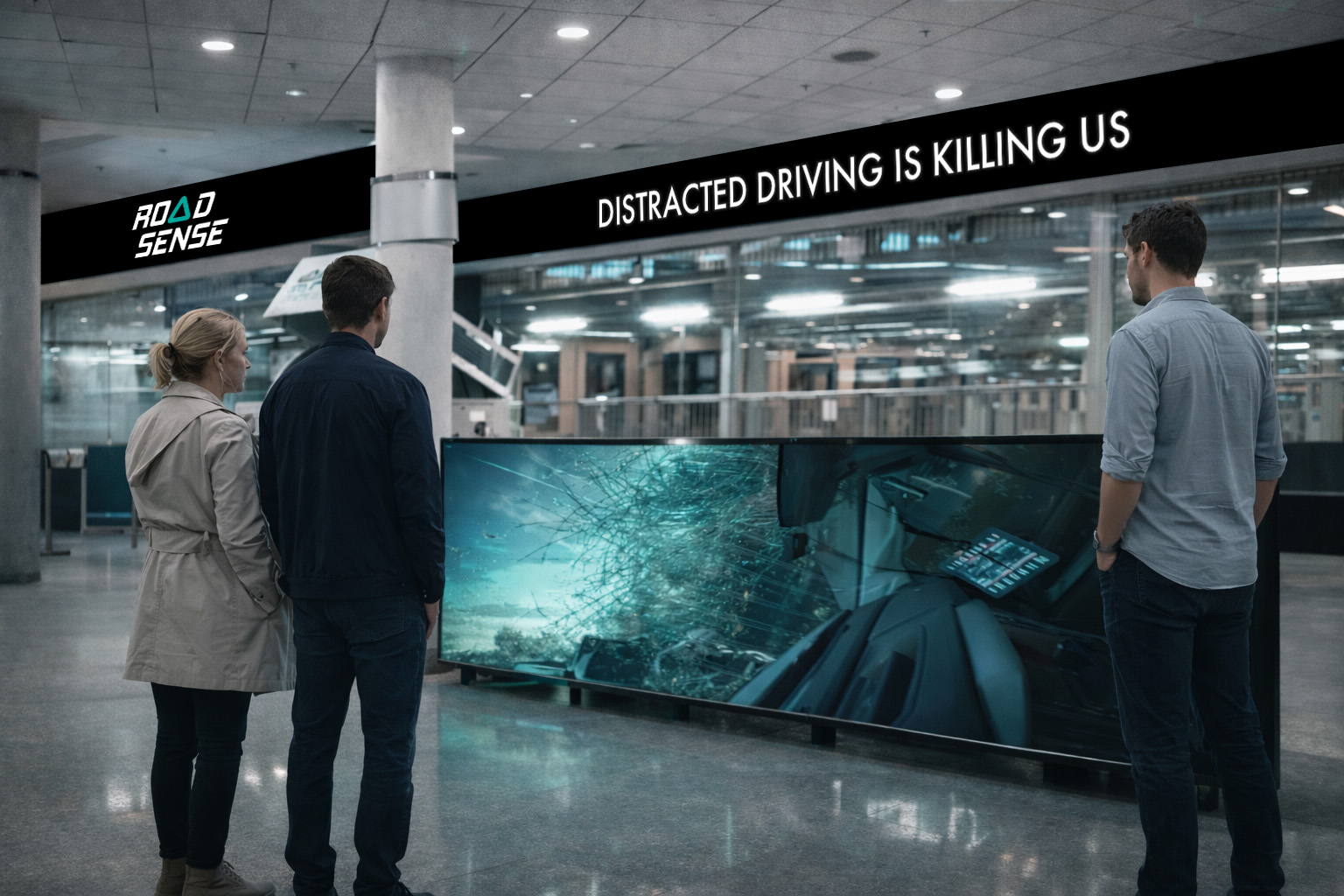 A conceptual public awareness campaign for RoadSense, reframing distracted driving as a system failure.