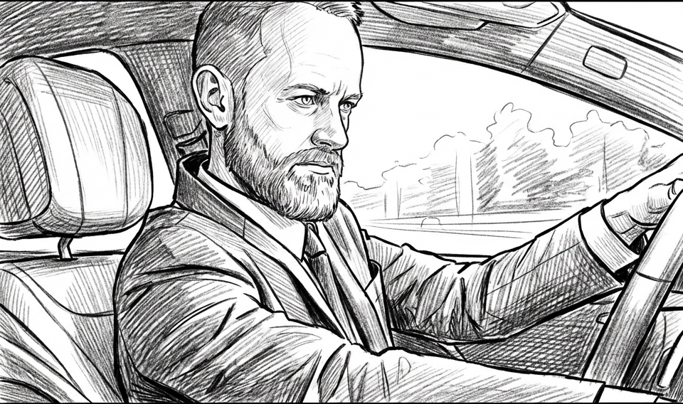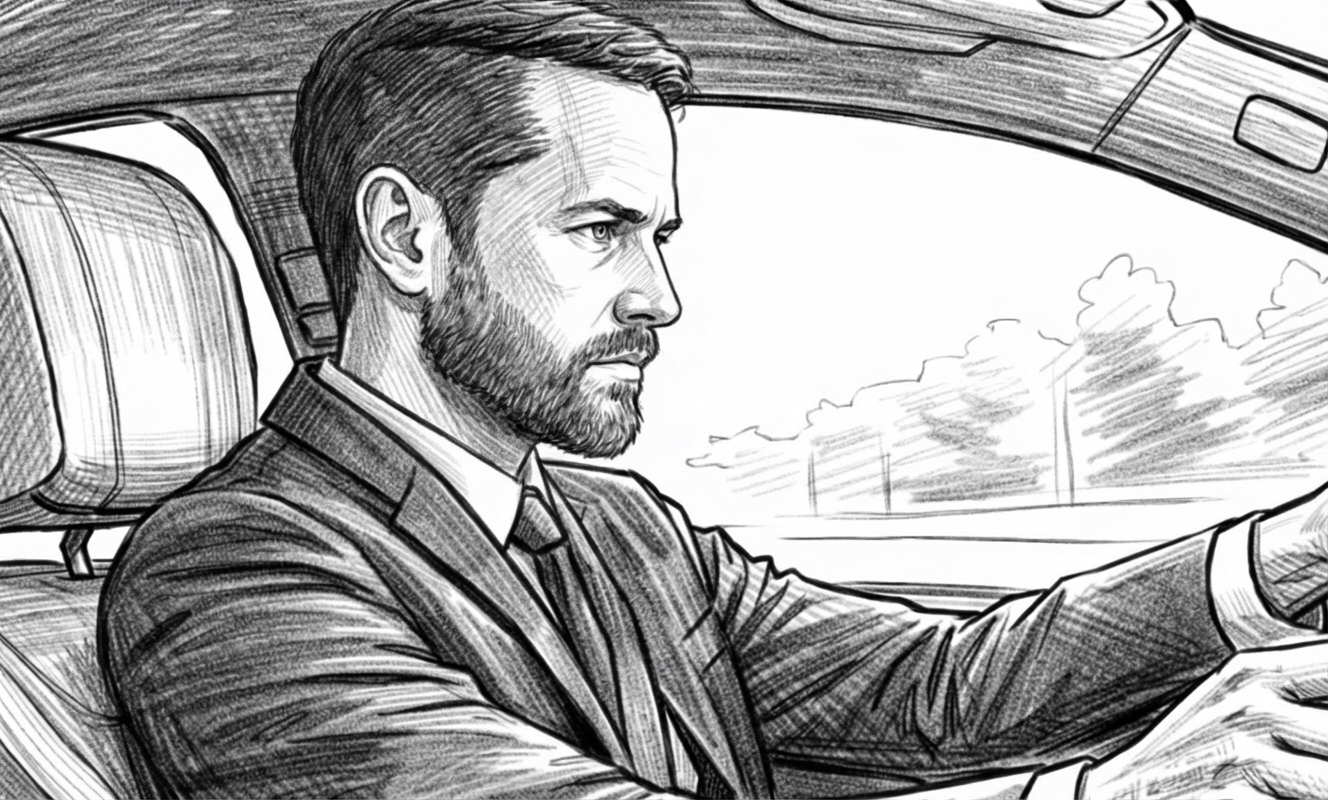 The driver’s expression tightens. The voice continues — calm, honest, unavoidable.