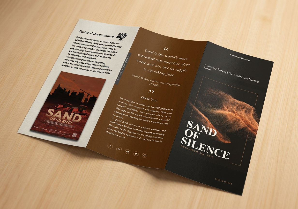 The title needed to move beyond description toward poetry. “Sand of Silence” reflects the quiet, unnoticed extraction of sand, its gradual disappearance and the lack of awareness surrounding the crisis.